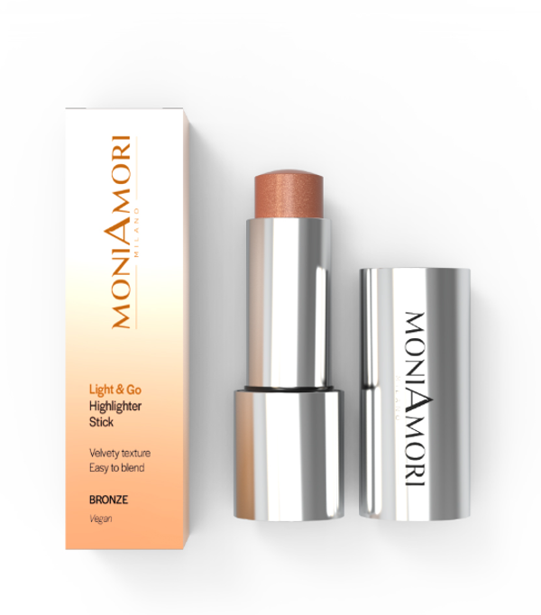 Light & Go de MoniAmori est un stick au toucher doux et soyeux, idéal pour illuminer le visage et le décolleté. Sa texture crémeuse, facile à estomper, et son format compact garantissent une application facile et un effet glowy immédiat. Sans parabènes et non testée sur les animaux, sa formule végane est enrichie en ingrédients précieux pour la beauté de la peau : l'Huile d'Argan et la Vitamine E apportent nutrition et un effet antioxydant, tandis que l'Extrait de Ginseng exerce une puissante action revitalisante.